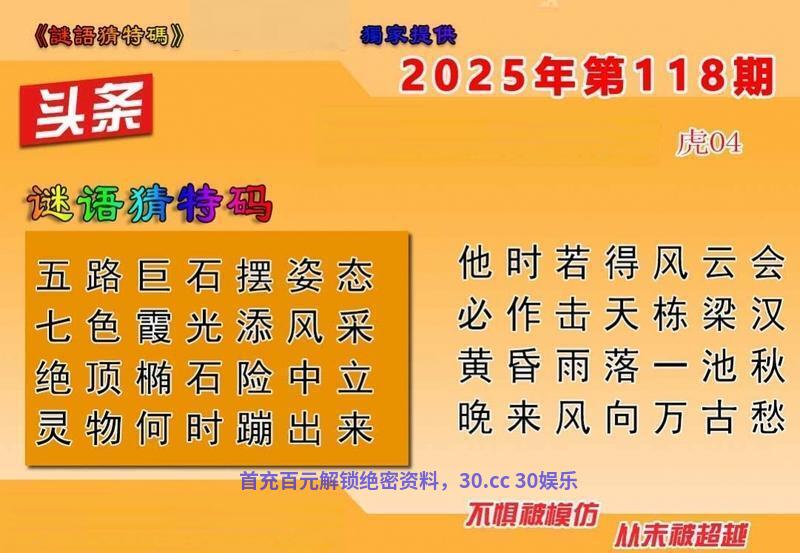 118期六合头条【解迷语猜特码】 五跑巨石摆姿态 七色霞光添风采 绝顶椭石险中立 灵物何时蹦出来 解译:七色,七解单数,绝顶,解天肖 九肖:猴鸡鼠兔猪龙牛虎蛇 六肖:猴鸡鼠兔猪龙 |